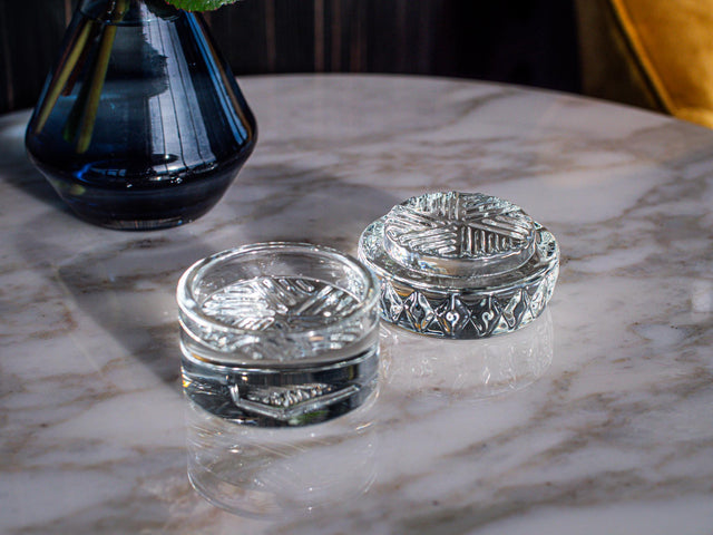 Introducing two signature pieces from Mellow Interior: our signature ashtray and luxury glass grinder. Together, they embody the perfect balance between functional design and understated elegance.
